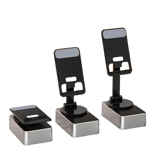 Meet the Ultimate 2-in-1 Gadget: a sleek phone stand with a powerful Bluetooth speaker.